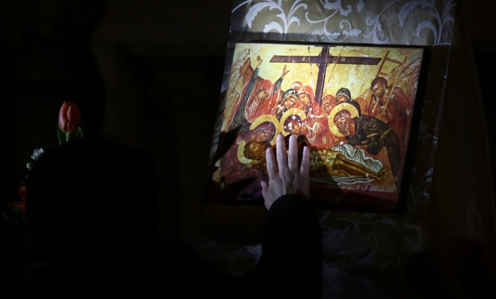 A liturgián a szentély középpontjába helyezték a sírba tétel ikonját, melyen Jézus kereszt tövében lefektetett teste körül ott van Mária a szent asszonyok társaságában, valamint János, Nikodémus és Arimetiai József. Elmélkedések, énekek és imák elhangzása közben a szertartáson részt vevők sorra az ikonhoz járultak, s illatos olajjal megkenték Jézus testének ábrázolását.