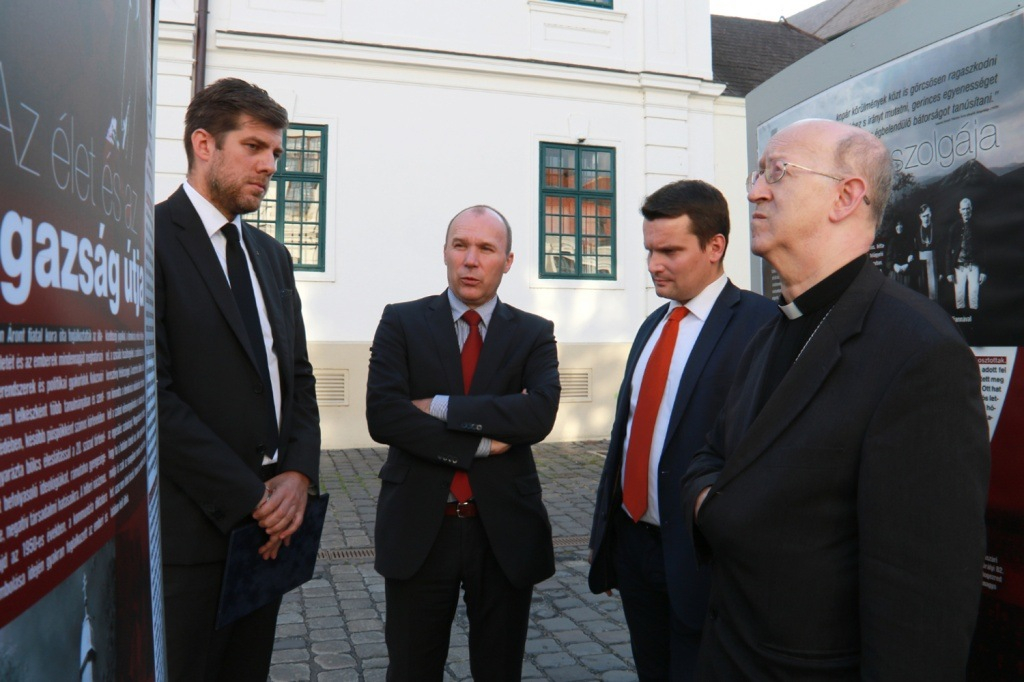 A Gondviselő különös kegyelme, hogy a Márton Áron-emlékév alkalmából a Nemzetpolitikai Államtitkárság és a Pro Patria Egyesület által életre hívott kiállítás a Kárpát-medence több települése után éppen a Szent Mihály-búcsú idejére érkezett Veszprémbe. A Szent Mihály-bazilika és Veszprém város védőszentjének ünnepnapját Márton Áron égi születésnapján, szeptember 29-én tartjuk – hívta fel a jelenlévők figyelmét Pálfalviné Ősze Judit, a kiállítást Veszprémben fogadó Szaléziánum Érsekségi Turisztikai Központ igazgatónője.