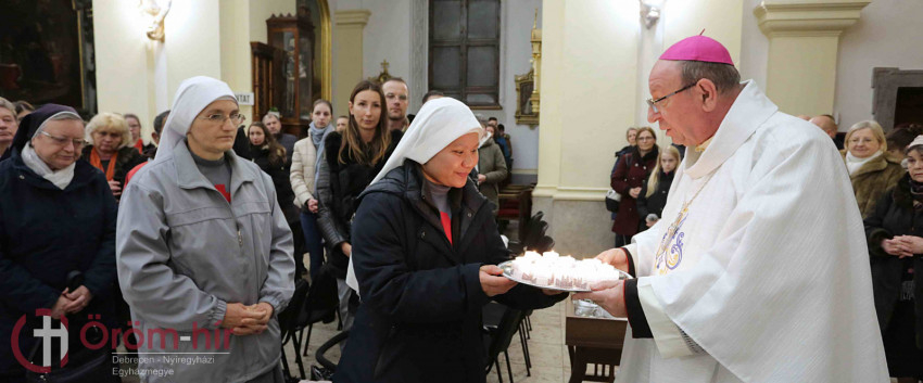 Gyertyaszentelő Boldogasszony ünnepén, a megszentelt élet napján, február 2-án szerzetesi hivatásokért is imádkoztak a debreceni Szent Anna-székesegyházban. A Palánki Ferenc megyéspüspök által bemutatott ünnepi szentmisén a Debrecen-Nyíregyházi Egyházmegyében szolgáló szerzetesek is részt vettek.