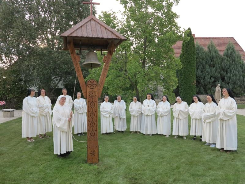 „1989 őszén, amikor a szerzetesélet szabad lett, elkezdtük az ősi, ciszterci építészeti szabályok alapján a monostor és a templom építését. Volt, aki féltett minket, volt, aki csodálta bátorságunkat, én azonban biztosan tudtam és éreztem: az Úristen akarja, hogy a Szűzanya tiszteletére felépüljön templomunk és monostorunk. 1993. szeptember 11-én Kada Lajos érsek atya, apostoli nuncius szentelte fel, s azóta itt dicsérjük és imádjuk Istent, és törekszünk a Regula szerinti hűséges szerzeteséletre.”