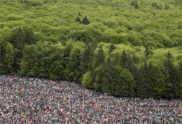 Kedves testvéreim, ezt az áldást élvezzük most, a Jóistennek a gyönyörű teremtett világában, e csíki tájban, ahol ezt a teret betöltöttük, de ahonnan Isten áldását és a Boldogságos Szűzanya áldását akarjuk magunkkal vinni, hogy betöltsük azt az életteret is, ahol mindennapjainkat éljük. A családi ház életterét, a falunak, a városnak az életterét, az országnak az életterét, mert Isten áldása erre is szól. És ha jó nekünk itt, a somlyói szent hegyen összekapaszkodva imádkozni, akkor ebből erőt kell merítsünk ahhoz, hogy otthon is, családunkkal, házastársunkkal, gyermekünkkel, de falunkkal is, egyházközségünkkel, egész népünkkel összekapaszkodva imádkozzunk. Isten áldását kérjük, hogy a nekünk adott életteret betöltsük, hogy ne maradjon beszegezett ház, gyermek nélküli iskola, megfogyatkozott falu és város, és főleg ne maradjon megfogyatkozott ország és szülőföld. Be kell töltenünk, testvéreim, életterünket! Isten áldása, kedves testvéreim, a teremtő Istennek az áldása, amely megnyilvánul teremtett világában, a világegyetemben és megnyilvánul az emberben is, így kell lecsapódjon ezen szent hely áldásaként a mi mindennapi életünkbe, az én mindennapi életembe.