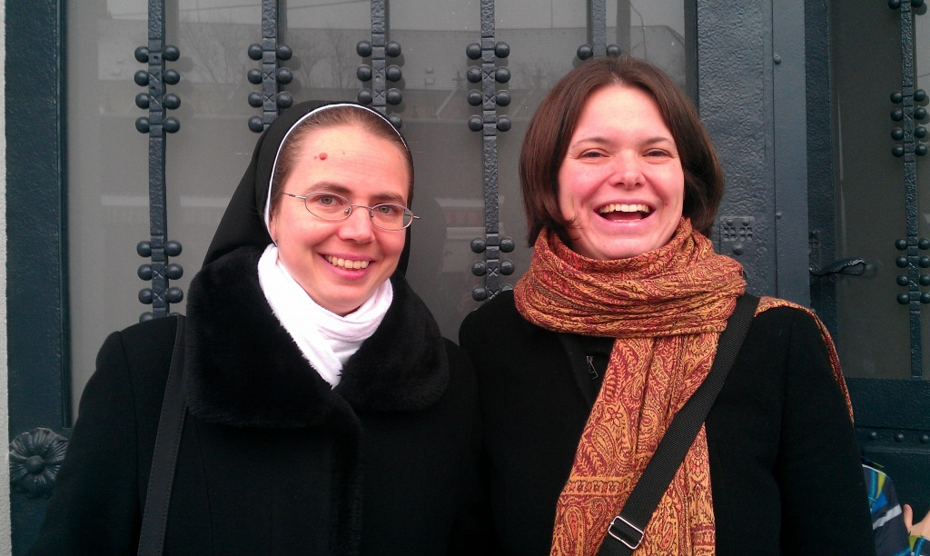 A mellékelt képen Mátray Lelle Mária nővér látható, mellette pedig én nevetgélek. Jókedvünk volt, mert minden évben a téli szünetben, immár hagyományosan, találkozunk és beszélgetünk egy nagyot!