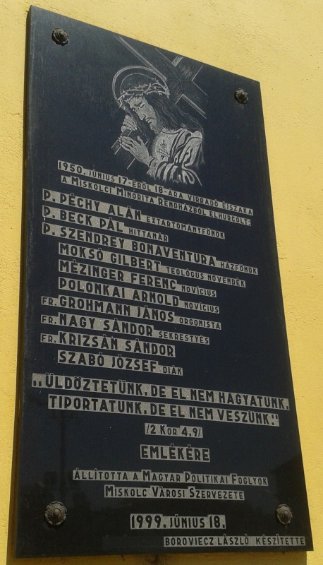 Mindennek vége lett egy csapásra. Néhány szép év után a kommunista diktatúra kibontakozott, s váratlanul lecsapott a szerzetesrendekre is. 1950 nyarán a miskolci minoritákat is internálták, egy éjszaka alatt elhurcolták őket, és egy eldugott kis alföldi településre, Homokra vitték. Éjszakai elhurcolásuk reggelén a hívek tömege gyászolt és imádkozott a lezárt templom és rendház előtti nagy téren. Mikor kitudódott, hogy hova kerültek (tömegszállásra, egy tornaterembe szalmazsákokra), a hívek vállalva az akkori időszak nem kis kockázatát és a fáradságot, hajnalban vonatra szállva zarándokoltak Homokra. Vitték az élelmiszert, ahol a minoritáink ferences derűvel viselték a helyzetet.