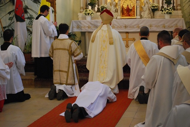 A prédikáció után következett a diakónusszentelés szertartása, melynek során Balás Béla megyéspüspök diakónussá szentelte Vincze Miklóst.