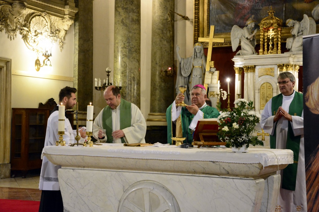 A konferencia záró szentmiséjét Snell György püspök mutatta be. Szentbeszédében a napi evangéliumhoz, a tíz leprás megtisztításának történetéhez kapcsolódott. A középpontba a gyógyuláshoz vezető utat és a hálaadás kérdését állította. Felidézve a jelenetet Snell György azt a lelkiállapotot érzékeltette, melyben a társadalomból kitaszított, megbélyegzett személy el mer indulni az emberek közé, mert hisz abban, hogy Jézus szavára valami történni fog, bízik és remél. És valóban, útközben mind a tízen meggyógyulnak. Miért fontos, hogy az egy megtisztult visszament köszönetet mondani Jézusnak, a többi kilenc pedig nem? A püspök egy indiai szerző művéből olvasott fel, aki a vissza nem ment kilenccel készített képzeletbeli riportot. Mindegyiknek volt indoka, miért nem érezte fontosnak a hálaadást. A történettel tükröt tartott a hallgatóságnak, annak a tapasztalatának hangot adva, mennyiszer elfeledkezünk a hálaadásról. Tesszük ezt annak ellenére, hogy a bölcsőtől a sírig rá vagyunk utalva egymásra. Tudnunk kell köszönetet mondani a jóért, amit másoktól kapunk. Ez alapvető viszonyulás kellene, hogy legyen életünkben – fogalmazta meg az irgalmasság szentévének egyik üzenetét Snell György.