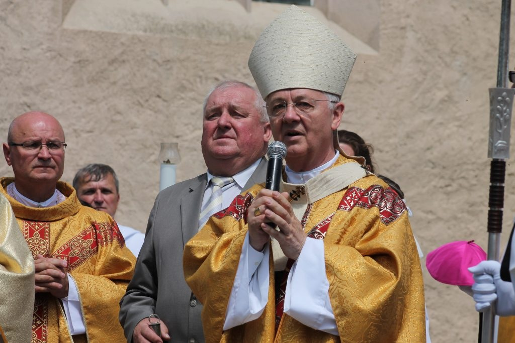 Böcskei László köszöntőjében kiemelte, a pünkösdi öröm csak fokozódik abban, hogy együtt ünnepelhetjük Isten jóságát és gondoskodását, mellyel égi édesanyát rendelt nekünk. A Boldogságos Szűzanya nemcsak tanítónk, hanem példánk is Jézus Krisztus követésében. Szent Erzsébet szülőhelyén újra átélhetjük, hogy kiválasztott bennünket az Úr, és hálát adhatunk, kérhetjük a segítségét.