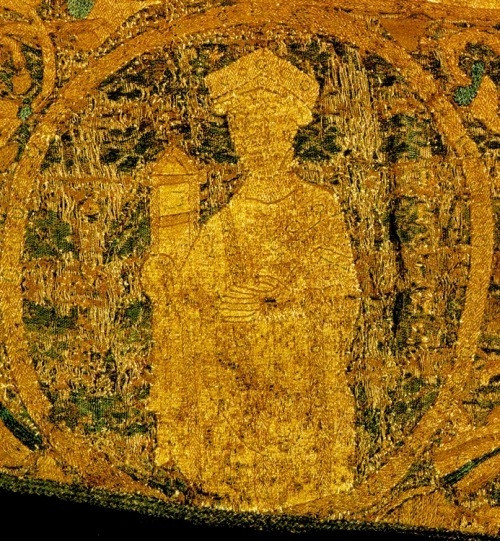 Szent István törvényei szerint az országos ügyek mellett a magyar királyné kötelességei közé tartozott a liturgikus textíliák elkészítése is. Ha minden templomnak csak egy-egy rend öltözetet juttattak is az öt liturgikus színben, csupán ez körülbelül kétezer miseruhát jelentett. Gizellától, illetve szoros környezetéből származik az a székesfehérvári Szűz Mária-templomnak adományozott aranyfonallal hímzett selyemszövet miseruha, melyből a 12. században elkészült a koronázási palást. A paláston István király, Imre herceg és Gizella királyné is szerepel – ez az egyetlen, hímzés formájában fennmaradt, hitelesnek minősíthető ábrázolás a királyi családról.
