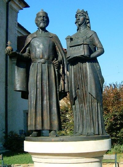 Lukács István: Szent István király és Boldog Gizella szobra Nagymaroson, 2001.