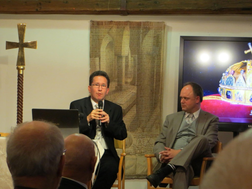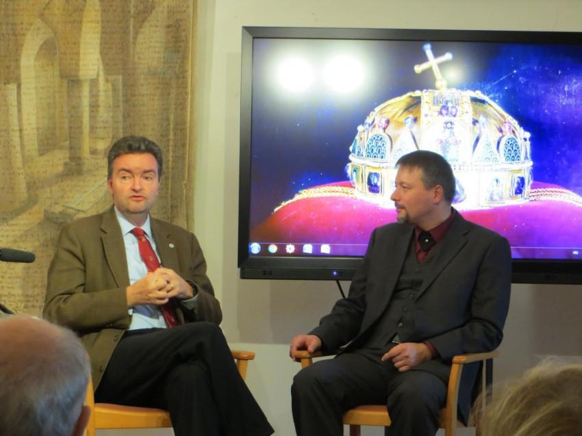 Rövid napközi imaóra és az ebédszünet után Habsburg Györggyel beszélgetett Kovács Gergely, majd a közönség tehetett fel kérdéseket. Ezt követően a jelenlévők megtekinthették a kutatócsoport legújabb eredményeit bemutató, eddig csak a Magyar Tudományos Akadémián vetített A Szent Korona és koronázási kincseink nyomában című ismeretterjesztő filmet. A vetítést pódiumbeszélgetés követte a film rendezőjével, Bárány Krisztiánnal, illetve a kutatócsoportot vezető Pálffy Gézával, az MTA BTK TTI tudományos tanácsadójával.