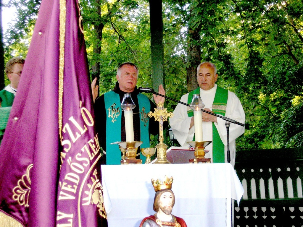 A zenepavilonnál ünnepi szentmisét mutatott be Csaba testvér Szabó János helyi plébánossal és Paál Sándor Ede káplánnal. Szentbeszédében kiemelte: születésünk fő célja, hogy megszenteljük a környezetünket. „Nemcsak az Úr napját, hanem minden más napot is, illetve a családunkat, baráti, munkahelyi közösségeinket is. Aki Jézus példáját követve ezen munkálkodik, az mindig egy kicsivel jobb lesz, több lesz”. A Jézussal való találkozás megváltoztatta, megszentelte, jó útra vezette a gadarai megszállottat, a házasságtörő asszonyt, Zakeust, Sault. Szent Maximilian Kolbe szerint az a szent, akinek a környezete szentté válik. Ez volt tapasztalható Szent István, Boldog Gizella és Szent László környezetében is. László király felajánlotta kardját, életét a magyarságért; megszentelte népünket: törvényeket alkotott, templomokat épített, győzedelmeskedett a kiskirályok fölött, megvédte az országot a betörő ellenségtől, sőt, ha megkeresztelkedtek, az ellenséget is integrálta a magyar nemzetbe – fogalmazott a ferences szerzetes.