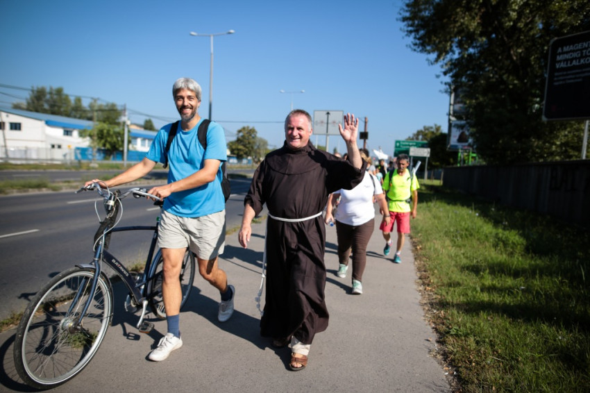Böjte Csaba testvér Csobánkáról indult útnak reggel fél hatkor egy zarándokcsoporttal, hogy a mintegy húsz kilométeres úton imával, énekkel felkészülve érkezzenek meg a találkozó helyszínére, a Margitszigetre.