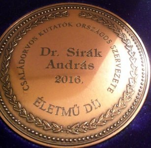 Sirák András az életműdíjat, melyet 2003 óta évente egy családorvosnak ítél oda a Családorvos Kutatók Országos Szervezete, február 25-én vehette át Budapesten.