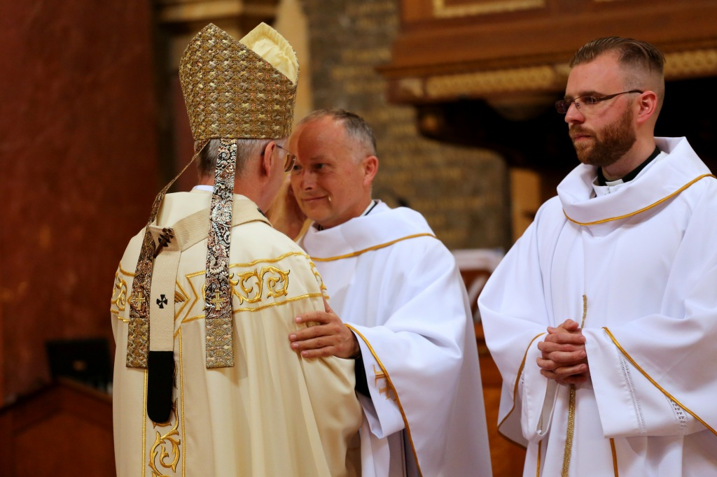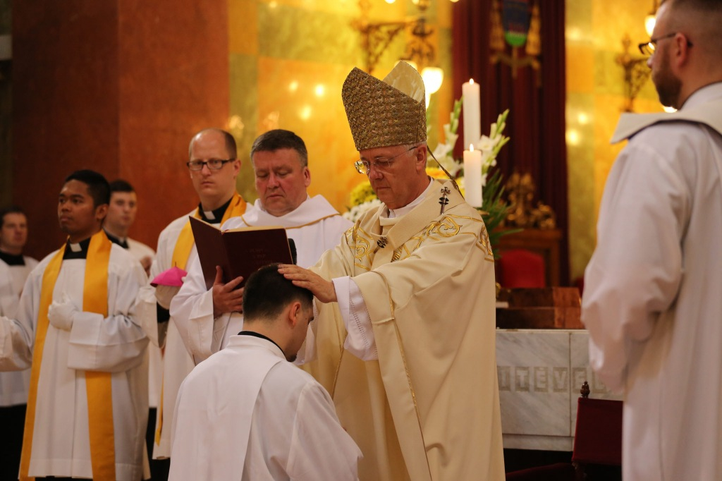 Ezután következett a diakónusszentelés, majd a papszentelés. A papszentelés során a szentséget kiszolgáltató egri érsek a felszentelő ima és kézrátétel által adta át a Krisztustól kapott áldozópapi hatalmat és küldetést. Ezt követően az egyházmegye papjai kézrátétellel fogadták be az új áldozópapokat az egyházmegye papi közösségébe. Az újmisések a főpásztorral és a jelenlévő papsággal együtt mutatták be a szentmisét.