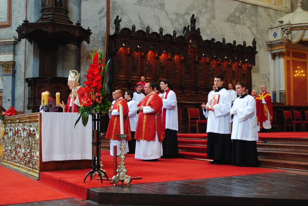 A szentmise olvasmányában hallottuk a Szentlélek kiáradásának történetét. A feltámadásnak, Krisztus megváltó áldozatának a gyümölcse és záloga a Szentlélek. Az evangéliumban olvassuk, hogy Jézus már feltámadása után azt mondja a tanítványoknak: „Vegyétek a Szentlelket”. Most pedig feltűnő formában csodálhatjuk meg a Szentlélek kiáradásának nagyszerű eseményét. Jézus az, akiben megmutatkozik Isten győztes szeretete az emberiség számára. A Szentlélek pedig őrzi és folytatja a történelemben Krisztus üdvözítő művét.