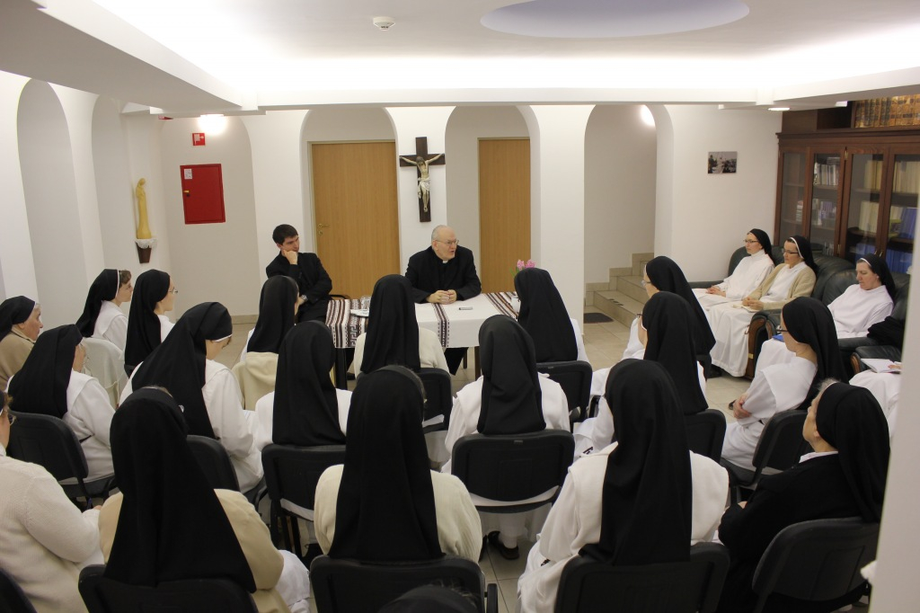 A domonkos nővérek káptalani előkészületük részeként fontosnak tartották, hogy világosabb képet kapjanak a Magyar Katolikus Egyház helyzetéről, de nem csupán hazai viszonylatban, hanem tágabb, európai, illetve világszintű kontextusban is. Ezért is kérték meg Erdő Péter bíborost, hogy segítse őket az eligazodásban. A főpásztor március 12-én, szombaton délután volt a nővérek vendége.