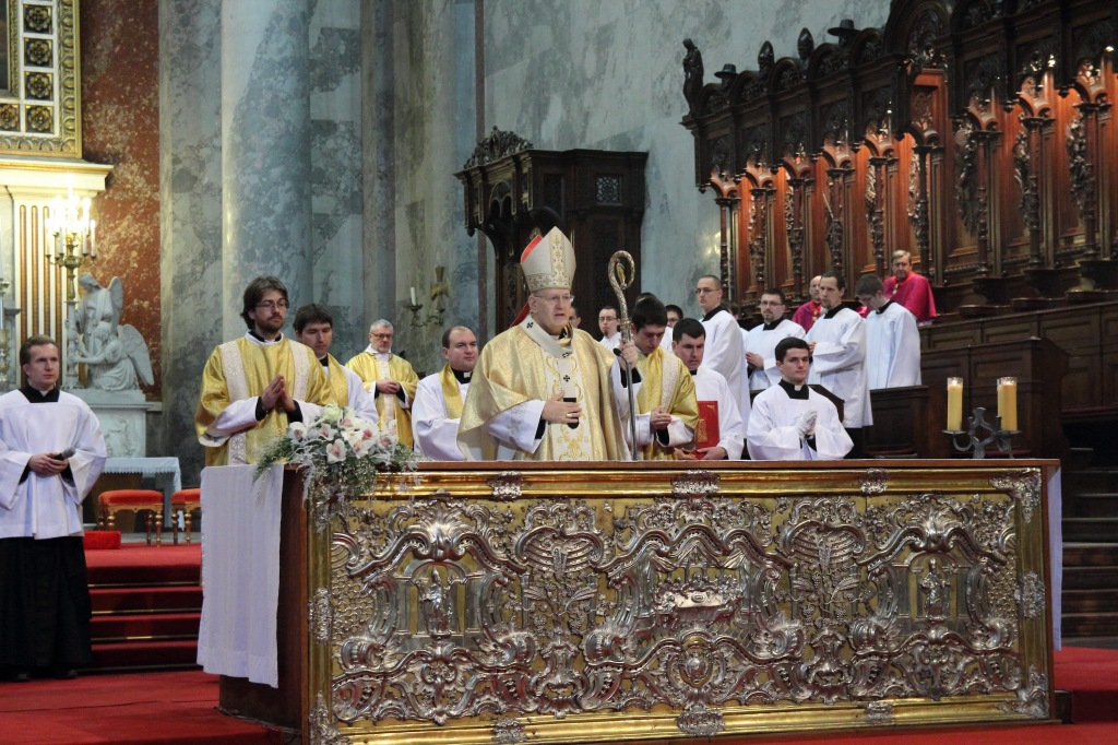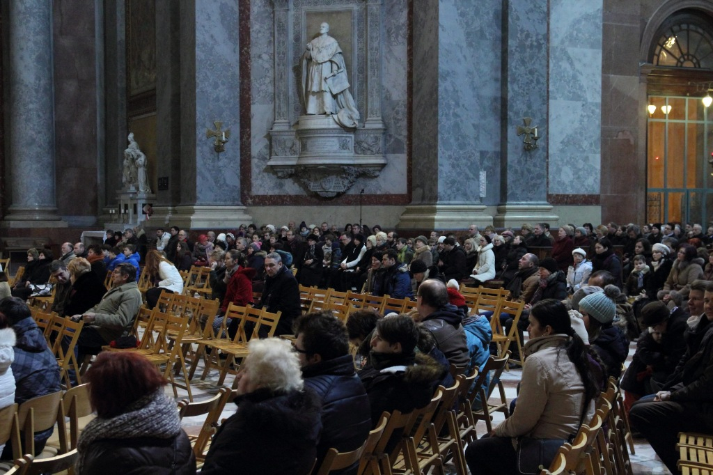 A szentmise záróáldása előtt Erdő Péter bíboros boldog új évet kívánt a híveknek, és minden magyarnak határon innen és túl.