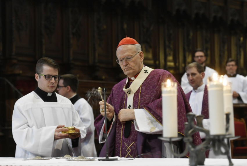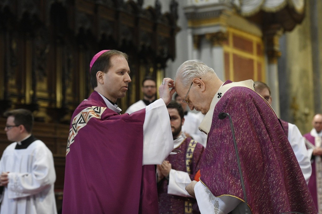 A homíliát követően Erdő Péter bíboros megáldotta a hamut, majd pedig elvégezte a hamvazás szertartását.