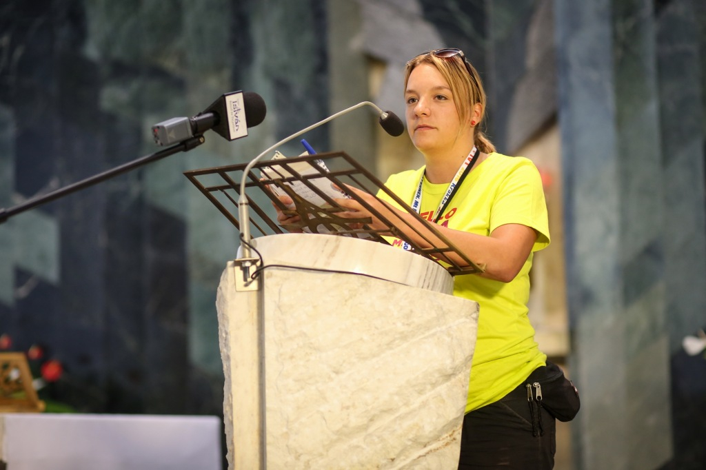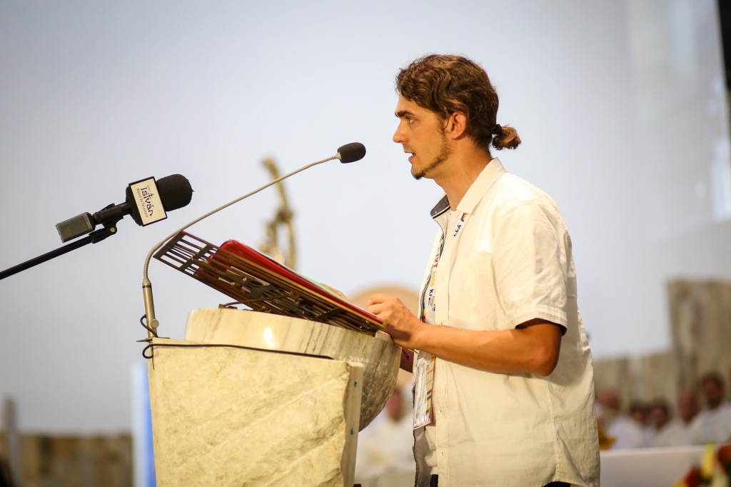 A szentmisét, amelynek főcelebránsa Palánki Ferenc debrecen-nyíregyházi megyéspüspök, a Magyar Katolikus Püspöki Konferencia Ifjúsági Bizottságának elnöke volt, a franciaországi túszdráma áldozatáért, Jacques Hamel atyáért ajánlották fel, szolidaritást vállalva az IVT-n részt vevő francia fiatalokkal, akik böjttel és imádsággal gyászolnak ma. Palánki Ferenc szentbeszédében felhívta a fiatalok figyelmét: az, hogy itt vagy a világtalálkozón, nem véletlen, hanem már maga ez a tény is egy küldetést foglal magában. Biztatta őket: hozzák le Isten szeretetét a földre, életükkel jelenítsék meg Isten jóságát, és így bátorította őket az elköteleződésre: arra vagy szabad, amire elkötelezed magad, és annyira vagy szabad, amennyire elkötelezted magad.