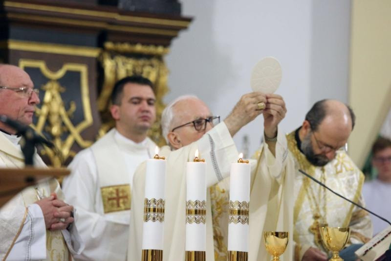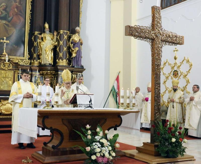 Homíliájában Bosák Nándor a Nemzetközi Eucharisztikus Kongresszus missziós keresztjére tekintve kiemelte: a hálaadó szentmisét a kereszt árnyékában tartjuk, ami a figyelmünket a nagy eseményre irányítja, hogy az ne csak külső ünneplés legyen, hanem előkészítse a lelkünket annak megélésére, amit az Eucharisztiában kaptunk. A monumentális, gazdag, szemet gyönyörködtető ötvösmunka arra szólít bennünket, hogy azt a Krisztust kövessük, aki a keresztfán szerzett nekünk életet és üdvösséget. A kereszt szimbóluma alkalmat ad arra, hogy a papok is átgondolják életüket, amire most ez a jubileumi szentmise is irányul.