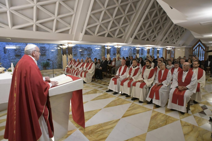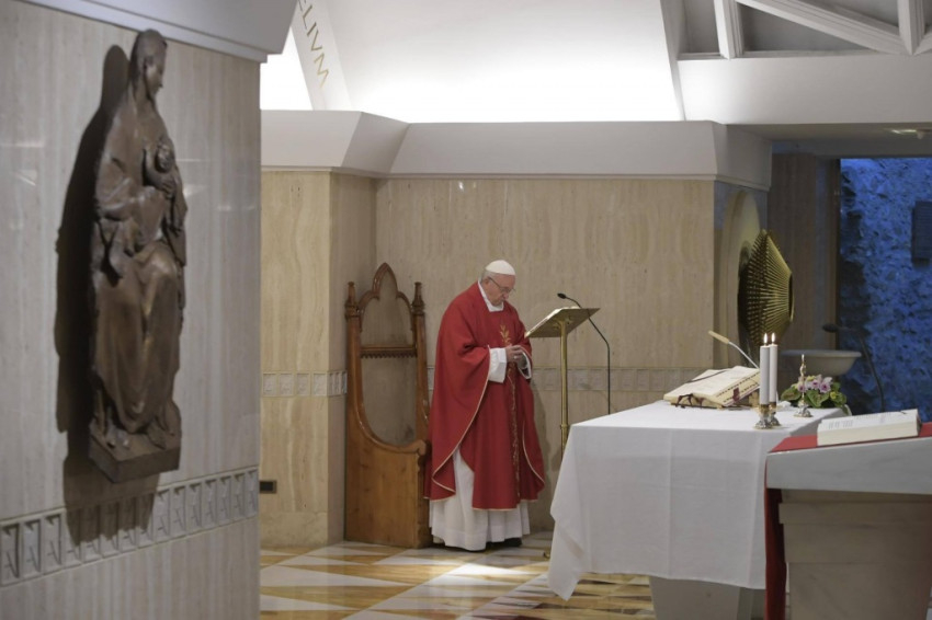 Életünk a győzedelmes és feltámadt Krisztussal halad előre, aki elküldi a Szentlelket; de ott van a megkötött kutya is. Nem szabad közel mennünk hozzá, különben megharap! – figyelmeztetett a pápa. – Az életben jelen van a kudarc és a győzelem: ezt tanítja nekünk a kereszt. El kell tudnunk viselni a kudarcokat, türelemmel viselni a bűneinket is, mert Jézus fizetett értünk. El kell viselnünk őbenne, bocsánatot kérni, de soha nem szabad hagynunk, hogy elcsábítson a láncra vert kutya!