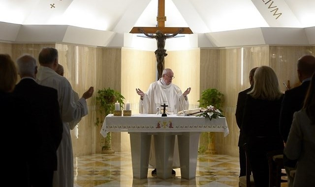 Olyan tisztán, mint Isten. És bűn nélkül, mert nincs olyan beismert tévedés, amely ne vonná maga után az Atya gyöngédségét és megbocsátását. Ez a keresztény élet – így összegezte Ferenc pápa a napi olvasmány mondanivalóját Szent János első leveléből (1Jn 5,1–2,2), melyben az apostol a híveket a kettős élet veszélyeire figyelmezteti. Felelősek azért, hogy csak a világosságot, Istent válasszák, ahelyett, hogy kívül látszatra fény, szívükben pedig sötétség uralkodna.