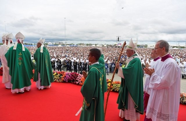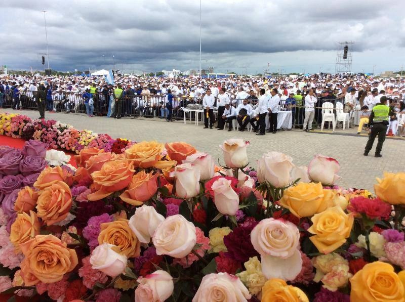 Ennek az utazásnak az utolsó miséjét ebben a városban mutatom be, amelyet „a hős város”-nak neveztek, amiért kétszáz évvel ezelőtt kitartóan védelmezte az elnyert szabadságot. Ezenkívül Cartagena de Indias harminckét év óta az emberi jogok székhelye Kolumbiában, mert itt az emberek – népként – megbecsülik azt, hogy „a Pedro Claver y Corberó, Alonso de Sando jezsuita papokból és Nicolás González jezsuita testvérből álló misszionárius csoportnak köszönhetően, akiket Cartagena de Indias város sok fia elkísért a 17. században, megszületett az a törekvés, hogy enyhítsenek a kor elnyomottjainak életkörülményein, főleg a rabszolgákén, akik számára kíméletes bánásmódot és szabadságot követeltek (Kolumbia Kongresszusa, 1985, 95. törvény, 1. bekezdés).