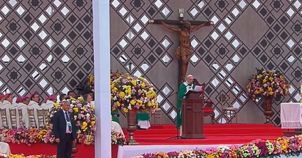 Az első lépés megtétele főleg azt jelenti, hogy Krisztus Urunkkal megyünk mások elé. Ő mindig azt kéri tőlünk, hogy határozottan és biztos lábbal lépjünk testvéreink felé, és mondjunk le arról a követelésünkről, hogy úgy kapjunk bocsánatot, hogy mi nem bocsátunk meg, hogy úgy kapjunk szeretetet, hogy mi nem szeretünk. Ha Kolumbia stabil és tartós békét akar, sürgősen lépnie kell egyet ebbe az irányba, amely a közjó, a méltányosság, az igazságosság, az emberi természetnek és követelményeinek tisztelete. Csak akkor tudjuk kibogozni a szembenállás összegubancolódott szálait, ha segítünk megoldani az erőszak csomóit: meg kell tennünk a találkozás lépését testvéreinkkel, vállalnunk kell a feddés bátorságát, amely nem kizárni, hanem integrálni akar; szeretettel hajthatatlannak kell lennünk abban, ami nem lehet alku tárgya; végeredményben pedig az a feladatunk, hogy építsük a békét, „ne a nyelvünkkel, hanem a kezünkkel és a tetteinkkel beszéljünk” (Claver Szent Péter), és együtt emeljük szemünket az égre: Ő képes megoldani azt, ami nekünk lehetetlennek látszik, Ő megígérte, hogy elkísér minket az idők végezetéig, és Ő nem engedi, hogy ilyen nagy erőfeszítés ne vezessen eredményre.