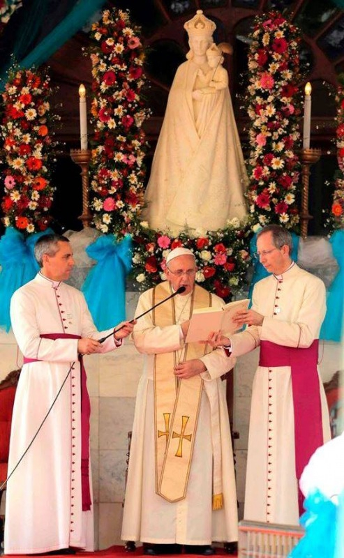 A kegyhelyhez közeledve a Szentatya többször megállt pápamobiljával, hogy kisgyermekeket és idős embereket áldjon meg. A szentélyhez vezető úton a hívek még a fákra is felmásztak, hogy láthassák a pápát. Spontán tánccal és zenével, különböző koreográfiákkal kedveskedtek neki. Az 500 ezer hívő közt feltűnően nagy számban voltak jelen fiatalok, a fejlődő országokra jellemző tendenciának megfelelően, ahol általában az újabb generációk teszik ki a lakosság nagyobb hányadát. Nagy lelkesedés és öröm várta a Szentatyát a hívek részéről, zászlókat lengettek, a pápát ábrázoló képeket tartottak a magasba, üdvrivalgásban törtek ki közeledésekor. Többek között orchideafüzérrel ajándékozták meg.