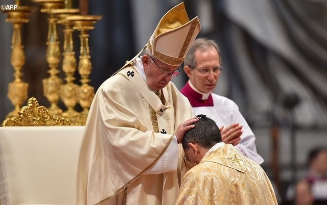 Szeretettel őrködjenek az egész nyáj felett, amelyet a Szentlélek rájuk bízott Isten egyházának vezetésére. Tegyék ezt az Atya nevében, akinek képmását jelenvalóvá teszik; Fia, Jézus Krisztus nevében, aki révén mesterek, papok és lelkipásztorok lettek; és végül a Szentlélek nevében, aki életet ad az egyháznak és hatalmas erejével támogatja gyengeségünket. Az Úr kísérje az új püspököket az úton, amelyet ezen a napon kezdtek meg – fohászkodott végül Ferenc pápa a püspökszentelési szentmisén.