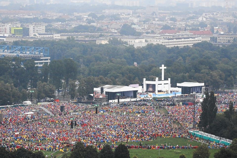 Szeretnék külön köszönetet mondani szülőföldjén Szent II. János Pál pápának [hangos taps] – hangosabban! hangosabban! –, aki megálmodta és elindította ezeket a találkozókat. Ő kísér minket az égből, látja a sok fiatalt, akik bár igen eltérő népekhez, kultúrákhoz és nyelvekhez tartoznak, mégis egyetlen szándék vezeti őket: ünnepelni Jézust, aki köztünk él! Értettétek? Ünnepelni Jézust, aki köztünk él! Amikor azt mondjuk, hogy él, az azt jelenti, hogy meg akarjuk újítani az ő követésére irányuló vágyunkat, azt a vágyunkat, hogy szenvedéllyel éljük meg Jézus követését. Lenne-e jobb alkalom a Jézussal való barátságunk megújítására, mint megerősíteni az egymás közti barátságot!? Lenne-e jobb mód a Jézussal való barátságunk megerősítésére, mint megosztani azt másokkal!? Lenne-e jobb mód az evangélium örömének megtapasztalására, mint akarni „megfertőzni” a jó hírrel a fájdalmas és nehéz helyzetben élő embereket!?