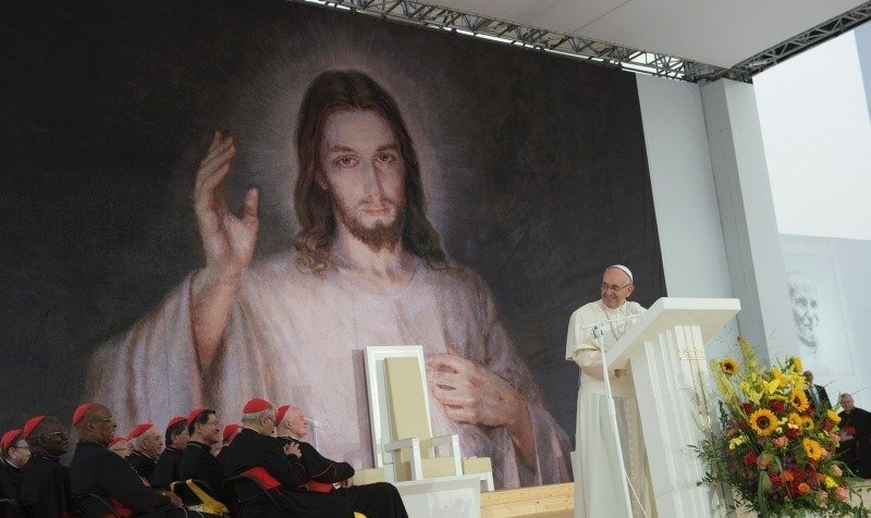 Kedves fiatalok, ezekben a napokban Lengyelország, ez a nemes föld, ünnepbe öltözik; ezekben a napokban Lengyelország az irgalmasság mindig fiatalos arca akar lenni. Ezen a földön veletek, de összekapcsolódva azzal a számtalan fiatallal is, akik ma nem tudnak itt lenni, de követnek minket a tömegkommunikációs eszközökön keresztül, valamennyien, együtt valódi szentévi ünnepet csinálunk ebből a napból, az irgalmasság szentévében.