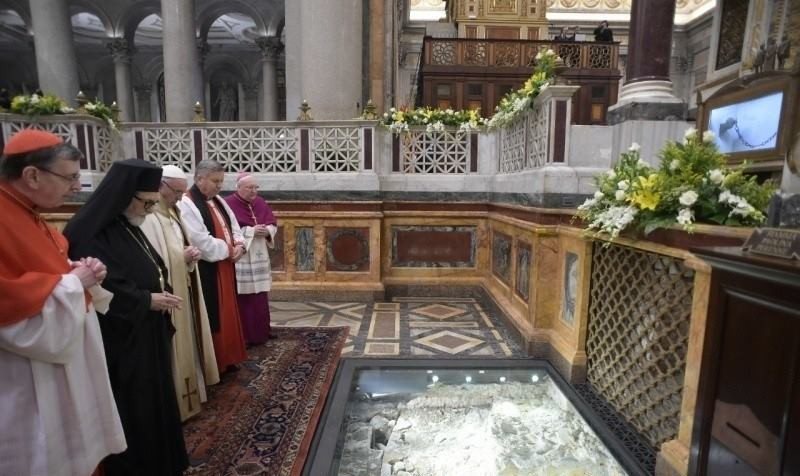 Kedves testvéreim és nővéreim, kapcsolódjunk most egymáshoz abban az imában, amellyel Jézus az Atyához fordult: „legyenek egyek […], hogy higgyen a világ (Jn 17,21). Az egység az Atyaisten irgalmának ajándéka. Itt, Szent Pál apostol és vértanú sírja előtt, melyet ebben a csodálatos bazilikában őriznek, érezzük, hogy alázatos kérésünket a tegnapi és mai keresztény vértanúk sokaságának közbenjárása támogatja. Ők nagylelkűen válaszoltak az Úr hívására, életükkel hűséges tanúságot tettek azokról a csodás tettekről, amelyeket Isten értünk művelt, és ők már megtapasztalják a teljes közösséget az Atyaisten jelenlétében. Példájuk segítségét élvezve – ezt a példát teszi magáévá a vér ökumenizmusa – és közbenjárásuk által megerősítve forduljunk Istenhez alázatos imádságunkkal.