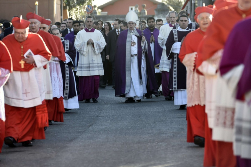 Mi is válaszolni szeretnénk erre a felhívásra, vissza akarunk térni az Atya irgalmas szívéhez. Ebben a kegyelmi időszakban, amelyet ma megkezdünk, szegezzük szemünket ismételten az ő irgalmasságára. A negyvennap egy út: az irgalmasság győzelméhez vezet minden valóság fölött, amely szeretne kidobni minket, vagy lealacsonyítani bármivé, ami nem egyeztethető össze istengyermeki méltóságunkkal. A negyvennap a szolgaságból a szabadságba, a szenvedésből az örömbe, a halálból az életbe vezető út. A hamvazkodás gesztusa, mellyel útnak indulunk, emlékeztet minket eredeti állapotunkra: a földből vétettünk, porból lettünk. Igen, de Isten szerető kezeivel megformált porból, aki az élet leheletét fújta mindannyiunkra, és továbbra is ezt akarja tenni; továbbra is szeretné nekünk adni azt az életleheletet, amely megment minket más típusú leheletektől: az önzéseink által előidézett fulladástól, nyomorúságos ambícióink és a csendes közömbösség által kiváltott fulladástól; a szellemet elfojtó, a horizontot beszűkítő és a szívverést lebénító fulladástól. Isten életlehelete megment minket ettől a fulladástól, amely kioltja hitünket, lehűti szeretetünket és keresztülhúzza reményünket. A negyvennap megélése nem más, mint ennek az életleheletnek az áhítása, amelyet a mi Atyánk nem szűnik meg felkínálni nekünk történelmünk sarában.