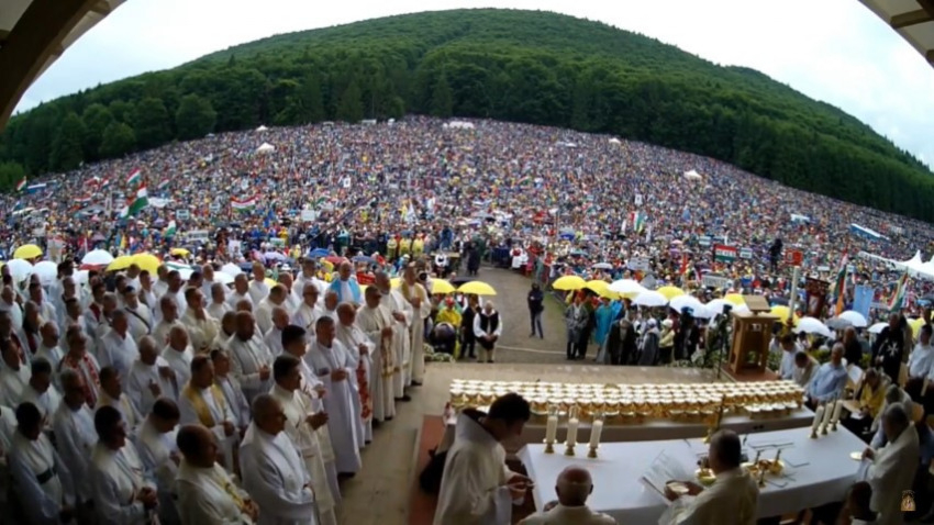Sokan megcsodáljuk Svájcot: szép ország, jólét van ebben az országban, a nagy háborúk elkerülték ezt a földet. Igen, ez azért is van így, mert hallgattak védőszentjük, Flüei Szent Miklós szavára, aki a lelkükre kötötte, soha ne lépjenek háborúba, maradjanak minden háborútól semlegesek. Igen, a svájciak, úgy néz ki, az évszázadok folyamán ezidáig hallgattak védőszentjük szavára. Nem léptek háborúba… Testvéreim, vajon a mi védőszentünk, a csíksomlyói édesanyánk mire tanít? Nekünk milyen tanácsot ad? És hallgatunk-e az ő szavára? Vagy egyáltalán kinek hallgatunk a szavára? Kedves magyar testvéreim és ti, székelyek, különösen is… hallgatjátok-e a csíksomlyói Mária szavát: Tegyétek, amit fiam mond? Tesszük-e, amit Jézus kér? Sokszor elmondjuk, főleg a déli és esti harangszókor: „Legyen nekem a Te igéd szerint!”. Mária nem csak kimondta ezt, de rá is tette erre az életét, hallgatott Isten szavára és tette Isten akaratát.