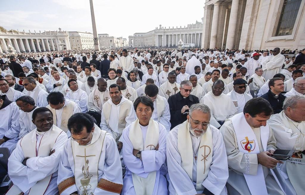Kedves testvéreim, most, a szentmise végén mondjunk dicséretet és köszönetet Istennek azért az ajándékért, amely az irgalmasság szentéve volt az egyház és sok jó szándékú ember számára. Nagy tisztelettel köszöntöm az Olasz Köztársaság elnökét és a jelenlévő hivatalos küldöttségeket. Kifejezem mély hálámat az olasz kormány vezetőinek és a többi intézménynek az együttműködésért és az elvégzett munkáért. Szívből mondok köszönetet a rendvédelmi szerveknek, az elhelyezésben, a tájékoztatásban, az egészségügyi ellátásban dolgozóknak, valamint minden korú és származású önkéntesnek. Külön is köszönetet mondok az Új Evangelizáció Előmozdításáért Felelős Pápai Tanácsnak, elnökének, és mindazoknak, akik együttműködtek a tanács legkülönbözőbb szintjein.