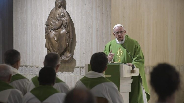 „Az első lépés tehát a kegyelem, hogy mindenki megtanulja vádolni magát, és nem másokat. A jel, hogy valaki ezt nem tudja megtenni, hogy egy keresztény nem tudja önmagát vádolni, az, amikor hozzá van szokva, hogy másokat vádoljon, kibeszélje őket, hogy mások életébe üsse bele az orrát. Ez pedig csúnya jel. Én is ezt teszem? Ez egy jó kérdés ahhoz, hogy eljusson a szívünkhöz. Kérjük ma az Úrtól a kegyelmet, hogy elcsodálkozva találjuk magunkat előtte, amit a jelenléte vált ki belőlünk. Kérjük a kegyelmet, hogy konkrétan bűnösnek érezzük magunkat, és azt mondjuk, amit Péter: „Menj el tőlem, mert bűnös ember vagyok” – zárta csütörtök reggeli homíliáját Ferenc pápa.