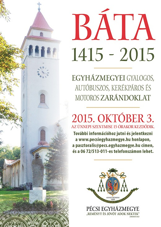 Október 3-án, szombaton jubileumi zarándoklatra várja a híveket a Pécsi Egyházmegye a 600 éves Bátára, a Szent Vér-kegyhelyre.