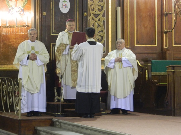 Ugyanakkor három lelkipásztori munkatársra is kérte a jó Isten áldását, hogy a szolgáló szeretet lelkületével és elöljáróik iránti engedelmességgel eltelve, tanúságtevő módon hirdessék Isten jóságát és építsék az ő országát.