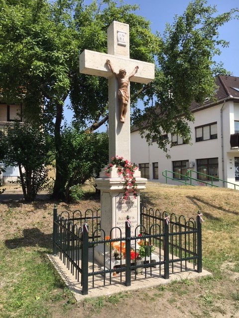 1856-ban Kocsis András szőlőműves negyvenforintos alapítványt tett, s felállíttatta a kőkeresztet, melyen egy pléh Krisztus volt, melyet először harminc évvel ezután kellett felújítani, majd 1924-ben nyúltak hozzá ismét. 1963-ban vandál kezek ledöntötték, ezután elbontották, egy magánházhoz, majd egy kőfaragó udvarába került – idézte fel a kereszt történetét Kerékgyártó József a június 24-i ünnepségen.