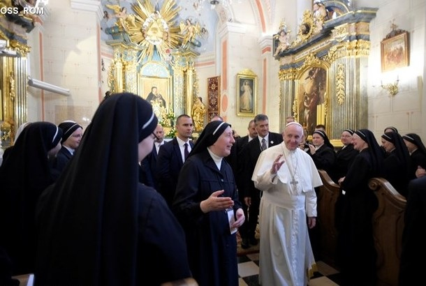 Az intézményben a pápa érkezésekor jelen volt az apácák által vezetett iskola ötven diáklánya is. A látogatás során a Szentatya imádkozott a rendalapító nővér (Zofia Czeska-Maciejowska) kápolnájában. Ferenc pápa aláírta a vendégkönyvet, és egy rövid üzenetet is hagyott: „Köszönetet mondok értékes szolgálatotokért, megáldalak benneteket, és buzdítalak nevelési missziótok folytatására: szeretettel vessétek el a jóság, a szépség és az igazság magvait, amelyeket Isten vet el az új nemzedékekben.”