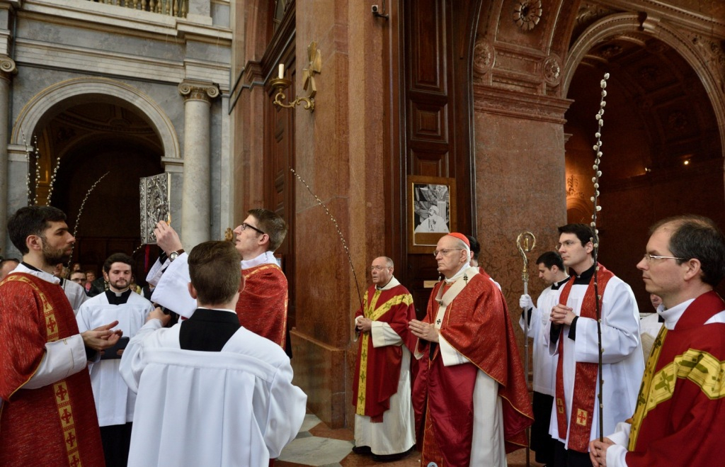 A szentmisét Stanisław Ryłko bíboros, a Santa Maria Maggiore-bazilika főpapja mutatta be a vatikáni Szent Péter-bazilikában, Szent II. János Pál pápa sírjánál. Magyar részről Tóth Tamás prelátus, a Pápai Magyar Intézet rektora koncelebrált.