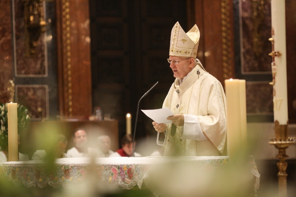 A szentmisén először a húsvét utáni szentföldi zarándoklatról beszélt a főpásztor, melyen ő is részt vett. Közel kétszáz püspök kapott meghívást Jézus földi életének színhelyére húsvét után, amikor azt az üzenetet ünnepelték, amellyel feltámadása után Jézus elküldte apostolait: „Adjátok hírül testvéreimnek, hogy menjenek Galileába, és ott meglátnak engem” (Mt 28, 10).