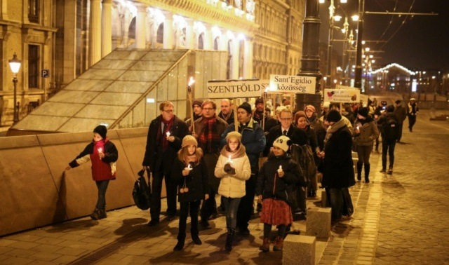 A Sant’Egidio közösség szerte a világon karácsony napján ebédre hívja szegény barátait, hogy terített asztaloknál együtt ünnepeljék Jézus születését. Január elsején pedig, Ferenc pápa a béke világnapjára írt üzenetét hirdetve, szerte a világon arra hívja az embereket, hogy lépjenek ki otthonaikból, fáklyás felvonulással és imádsággal emlékezzenek a háborútól szenvedő országokra.