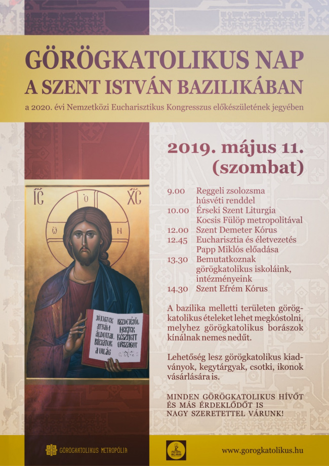 12.45-től Papp Miklós görögkatolikus parókus tart elmélkedést az Eucharisztiáról. A délután folyamán bemutatkoznak a görögkatolikus oktatási intézmények, 14.30-tól pedig a Szent Efrém Kórus ad koncertet.