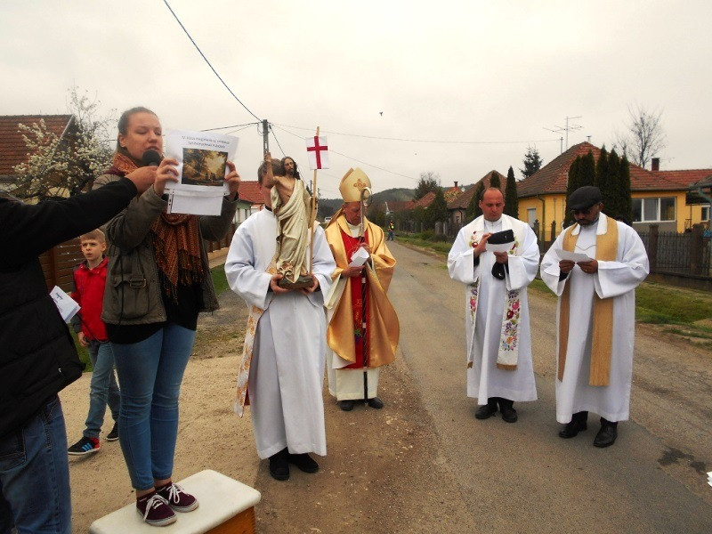 A Beer Miklós váci megyéspüspök által celebrált szentmisét az „Öröm útja” követte: Jézus életének feltámadása utáni állomásait járták végig a résztvevők – örömmel a szívünkben – énekszóval és imádsággal.