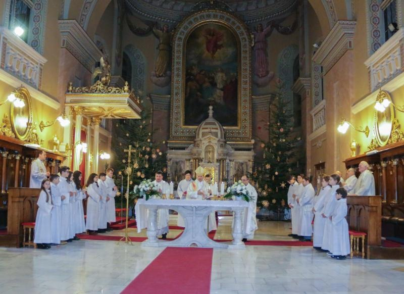 A szatmárnémeti székesegyházban éjjel negyed tizenkettőtől az ifjúság karácsonyi műsora, majd a gyermekek pásztorjátéka és Nagy Norbert tenor fellépése előzte meg a legszentebb áldozat bemutatását.