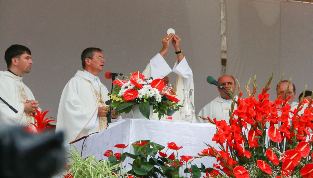 Bőséggel hullott az „égi áldás” a szatmárnémeti székesegyház előtti téren összegyűlt több ezer hívőre a Jézus Szíve-búcsún. A Szatmári Római Katolikus Egyházmegye búcsúünnepére idén is országhatáron belülről és túlról érkeztek katolikus hívek, hogy felajánlják önmagukat, családjukat Jézus Szentséges Szívének.