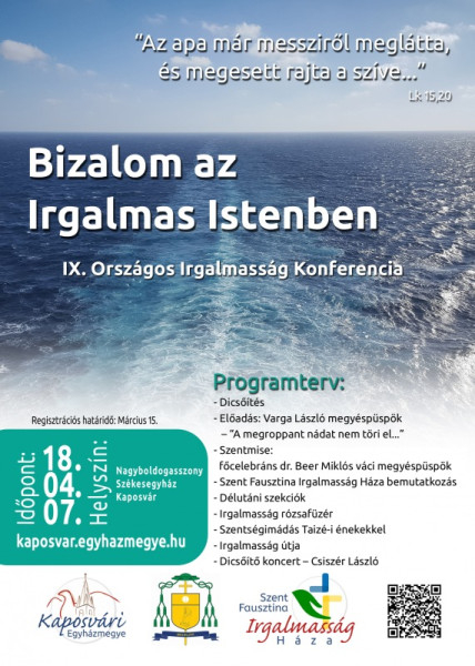 15 órakor közösen elimádkozzák az irgalmasság rózsafüzérét, majd szentségimádás következik taizéi énekekkel. A konferencia résztvevői végigjárják az Irgalmasság útját, majd 16.45-kor Csiszér László dicsőítő koncertjével zárul a nap.
