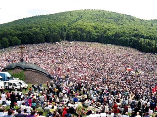 Az ünnepi szentmise 12.30-kor kezdődik a Hármashalom-oltárnál (a Kis- és Nagysomlyó hegyek közötti nyeregben).