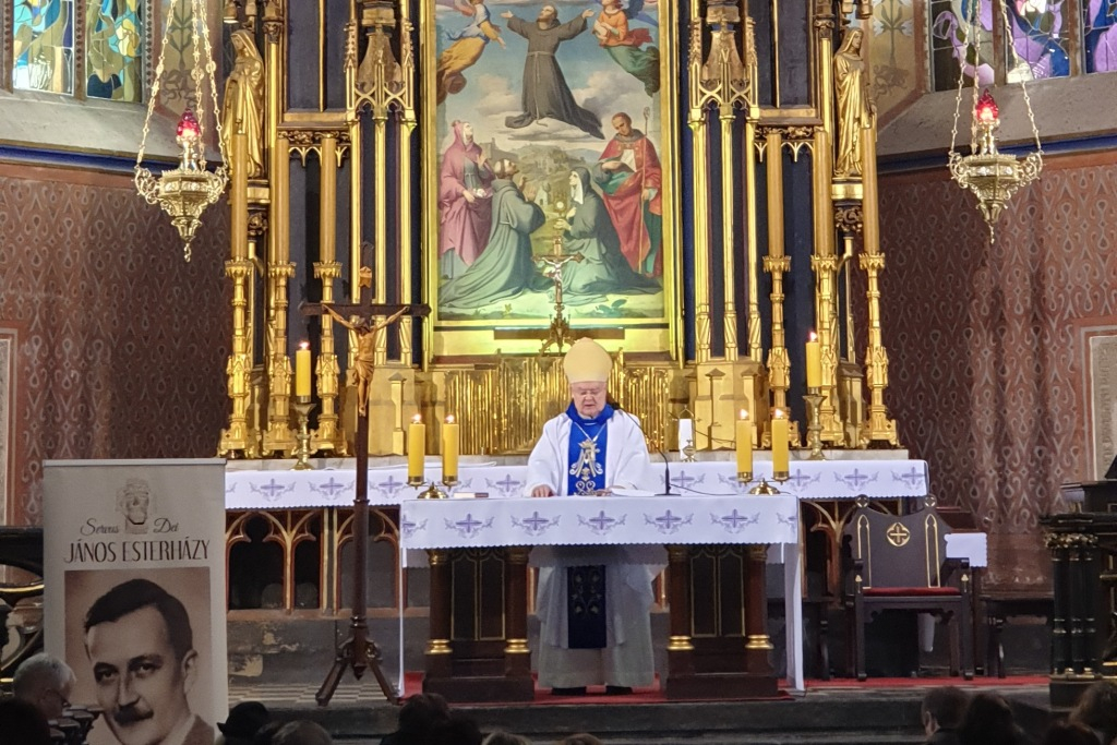 Esterházy János sokat szenvedett keresztény meggyőződéséért; Isten- és emberszeretetéért életével fizetett. A hitet megtartotta. Boldoggáavatási perének ünnepélyes megnyitóján tisztelettel emlékezünk példás keresztény tanúságára, helytállására és vértanúságára. Imádkozzunk, hogy mielőbb elnyerje az igazság győzelmi koszorúját. Magyarok Nagyasszonya, könyörögj érettünk!”
